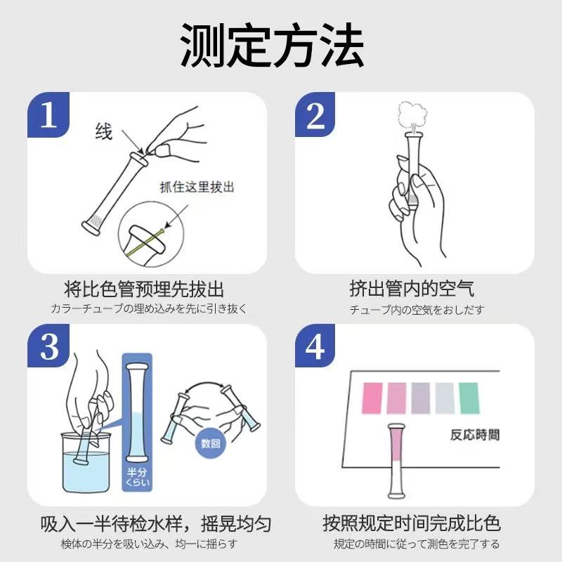 是利用一支長(zhǎng)度約為7公分外徑1公分的PE塑膠制封閉性試管內(nèi)部裝填了一次測(cè)定所需要用量的調(diào)制試藥.使用時(shí)先將試管前端的預(yù)埋線拉出再吸入欲測(cè)定的液體樣本,待水溶液與試藥反應(yīng)發(fā)色后于時(shí)間內(nèi)比對(duì)標(biāo)準(zhǔn)色卡,判讀其濃度值.