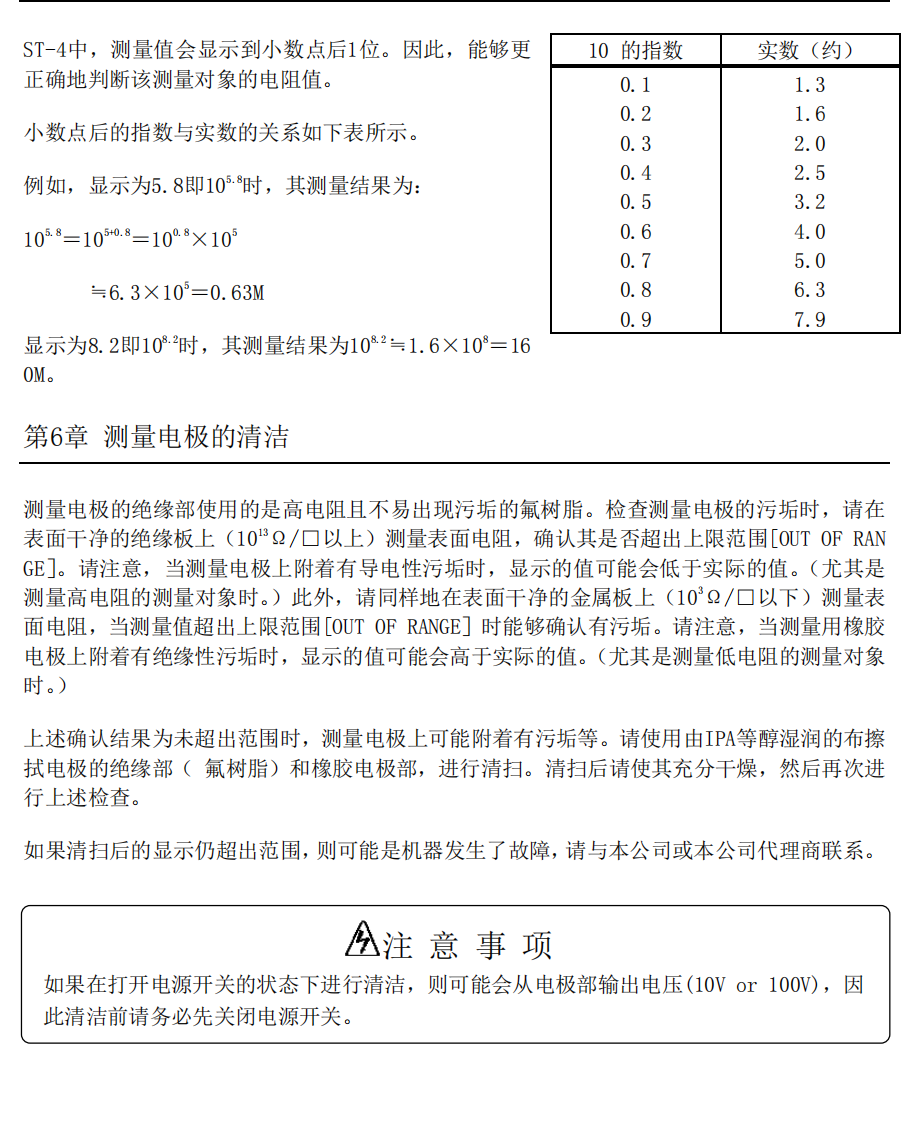 ③IEC標(biāo)準(zhǔn)的電阻測(cè)量模式 使用IEC標(biāo)準(zhǔn)的電極(接觸面積和重量)進(jìn)行測(cè)量的方式 LCD 顯示 指數(shù)顯示(顯示至小數(shù)點(diǎn)后1位) 利用柱形圖顯示倒計(jì)時(shí)的測(cè)量時(shí)間 顯示電池剩余電量 LED 顯示