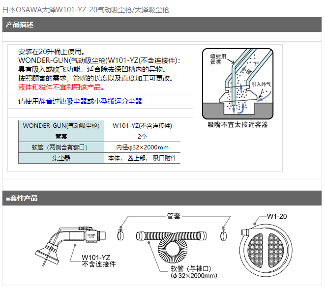 日本OSAWA大澤W101-YZ-20氣動吸塵槍