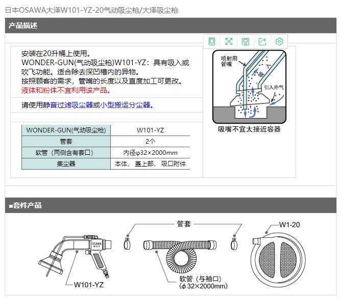 > 日本OSAWA大澤W101-YZ-20氣動吸塵槍