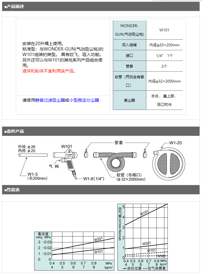 日本OSAWA大澤W1-20SET氣動(dòng)吸塵槍