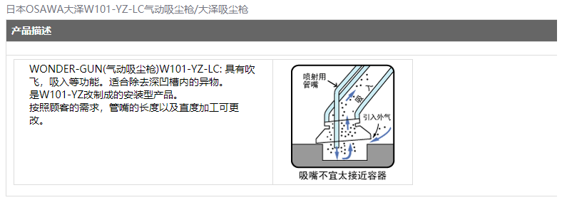 日本OSAWA大澤W101-YZ-LC氣動(dòng)吸塵槍