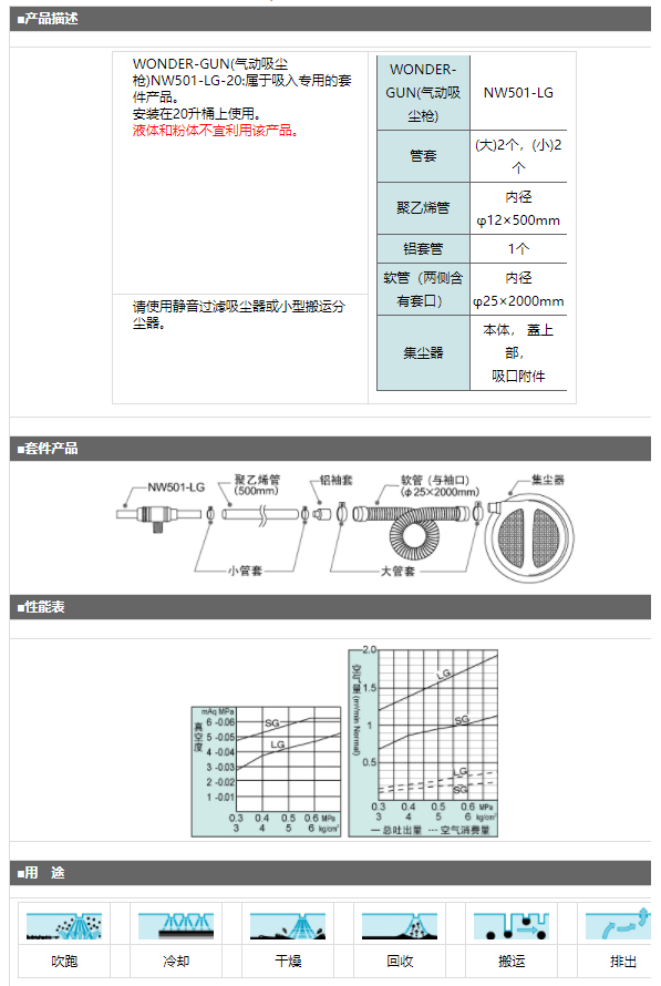 日本OSAWA大澤NW501-LG-20氣動(dòng)吸塵槍