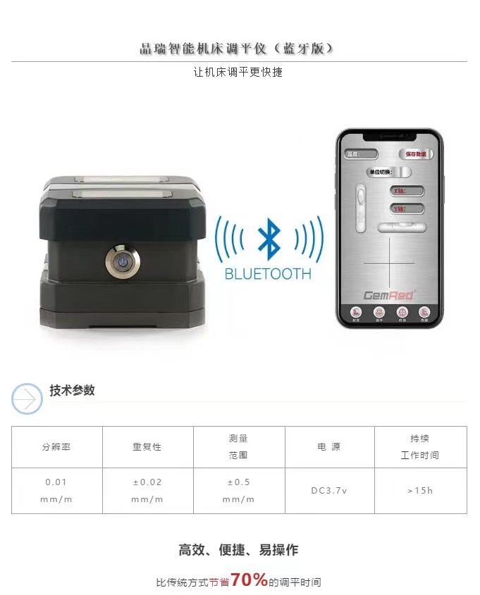 直觀的模擬水泡和數(shù)字雙顯模式,輕松完成機床加工時的水平檢測和使用時的日常維護工作;