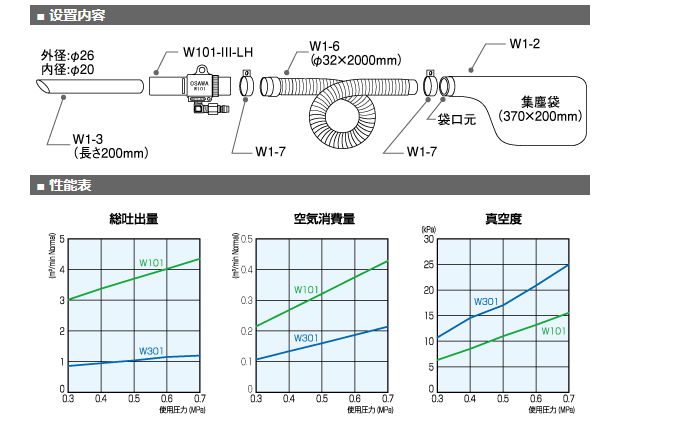 osawa大澤W101-III-B是一套用于抽吸的裝置。W101-III(無軟管接頭)可單獨使用。請用它來吹、吸、運。大澤的吹氣方向安裝吸嘴,壓縮空氣流動,沿“A”方向呈螺旋狀噴出。由于這個動作,大量的外部空氣被從“B”吸入并與壓縮空氣結(jié)合,可以噴出大量的空氣。在吸入方向安裝有吸嘴,壓縮空氣沿“B”方向呈螺旋狀噴射。這個動作從“A”處吸取了大量的外界空氣,可用于運輸和清潔。