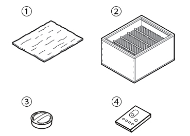 主機(jī), 電源線, 搖控器, 圓蓋, 前過(guò)濾片L (10塊), 主過(guò)濾片L, 使用說(shuō)明書(shū)