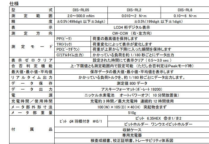 可切換測量單位多可保存5組上下限等設(shè)置800個內(nèi)存數(shù)據(jù)大約每 1/180 秒實時輸出可免費下載數(shù)據(jù)采集軟件DIS-RL 系列包括 DIS-RL05、DIS-RL2 和 DIS-RL6。
