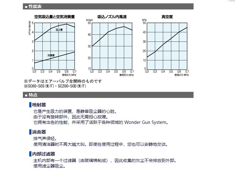 Silent Cleaner SC60-50S可以吸入壓縮空氣(compressor air)作為驅(qū)動(dòng)源。強(qiáng)力收集水、油、污泥、谷物、小礫石、金屬碎片等傳統(tǒng)工業(yè)清潔劑無(wú)法充分收集的物質(zhì)。非常適合任何工作場(chǎng)所。2級(jí)結(jié)構(gòu)/多重過(guò)濾器!長(zhǎng)時(shí)間連續(xù)使用OK!吸力強(qiáng)、降噪的吸塵器。重量:29 公斤 高度:984 毫米 寬度:550 毫米吸嘴:外徑:50 毫米 長(zhǎng)度:700 毫米吸管:內(nèi)徑:50 毫米,長(zhǎng)度:2000 毫米60 升帶腳輪的不銹鋼罐。