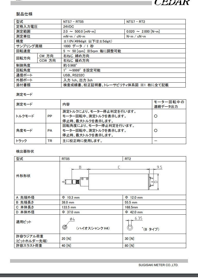 日本進(jìn)口cedar思達(dá)扭力測試儀NTS7系列NTS7-RT05和NTS7-RT2