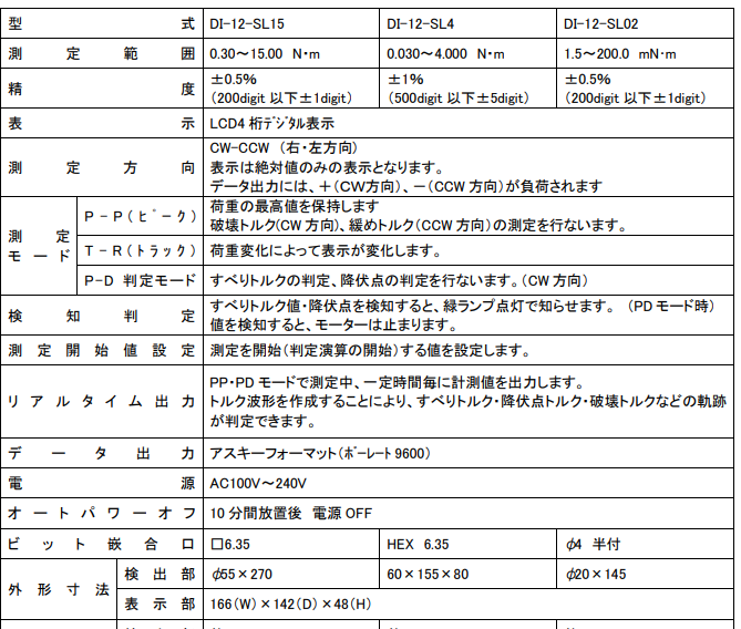 日本進(jìn)口思達(dá)DI-12-SL15測(cè)量擰緊的螺絲用多大的力擰緊。通過高精度捕捉滑動(dòng)的發(fā)生并測(cè)量其扭矩,現(xiàn)在可以測(cè)量擰緊螺釘?shù)呐ぞ刂怠S糜诋a(chǎn)品的抽檢和動(dòng)力驅(qū)動(dòng)器輸出力矩的設(shè)定和管理。