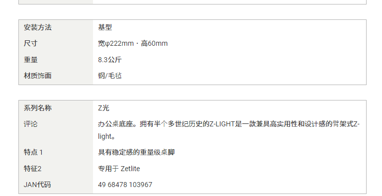 系列名稱 Z光評論 辦公桌底座。擁有半個多世紀(jì)歷史的Z-LIGHT是一款兼具高實用性和設(shè)計感的臂架式Z-light。特點 1 具有穩(wěn)定感的重量級桌腳特征2 專用于 Zetlite基型尺寸 寬φ222mm?高60mm重量 8.3公斤材質(zhì)飾面 鋼/毛氈
