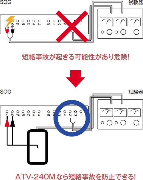 是為了防止在進行“VT內(nèi)置PAS聯(lián)鎖測試”時,因測試設(shè)備的夾子短路而導(dǎo)致“沒有保險絲等保護裝置的內(nèi)置VT損壞”的裝置。),以及當檢測到電壓時,信號輸出(觸點)變?yōu)?ON,并且操作燈閃爍。