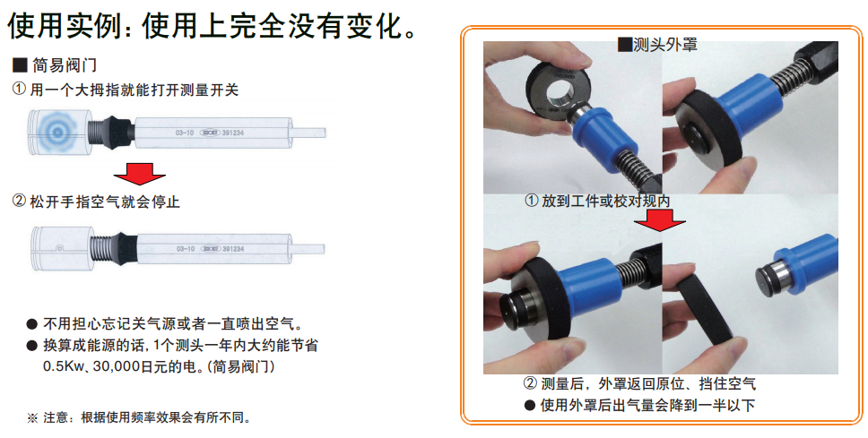 只要進(jìn)行簡單的操作就能減少工廠的空氣消耗,實現(xiàn)有益于環(huán)境的測量作業(yè)。
