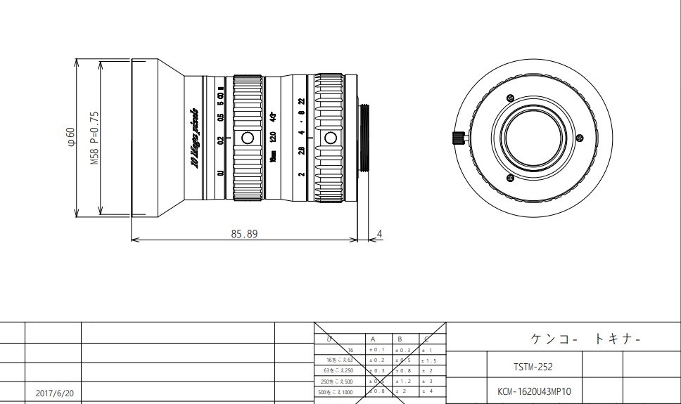 kenko圖麗KCM-1620U43MP10機器視覺鏡頭