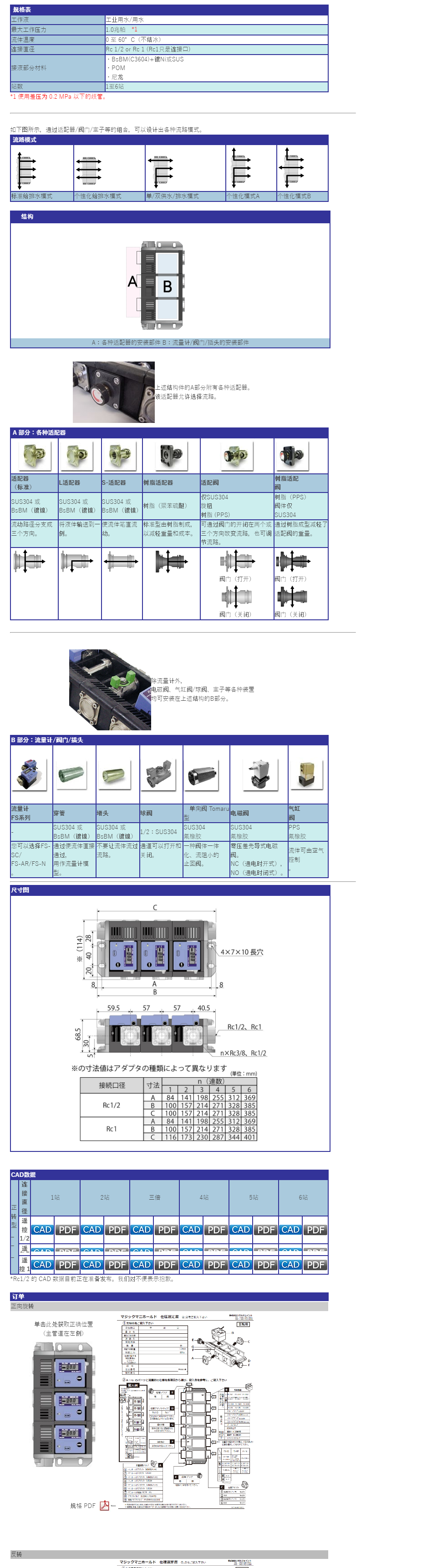 可以緊湊地集成多個流量計,可以同時確認多條線路的流量。通過組合一個塊和適配器,可以實現(xiàn)各種流路,如供水分配、排水混合、單線供排水。由于可以緊湊地布置配管,因此可以減少配管空間和部件數(shù)量。支持1~6個連接的組合。除歧管主體外,我們還可以設(shè)計和制造連接管道。