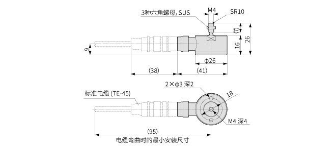 | 電纜 | 0.08 mm2, 4芯氟化樹脂電纜 3 m, 外徑約3,1 mm, 前端裸線 (屏蔽線沒有與主機(jī)連接) |