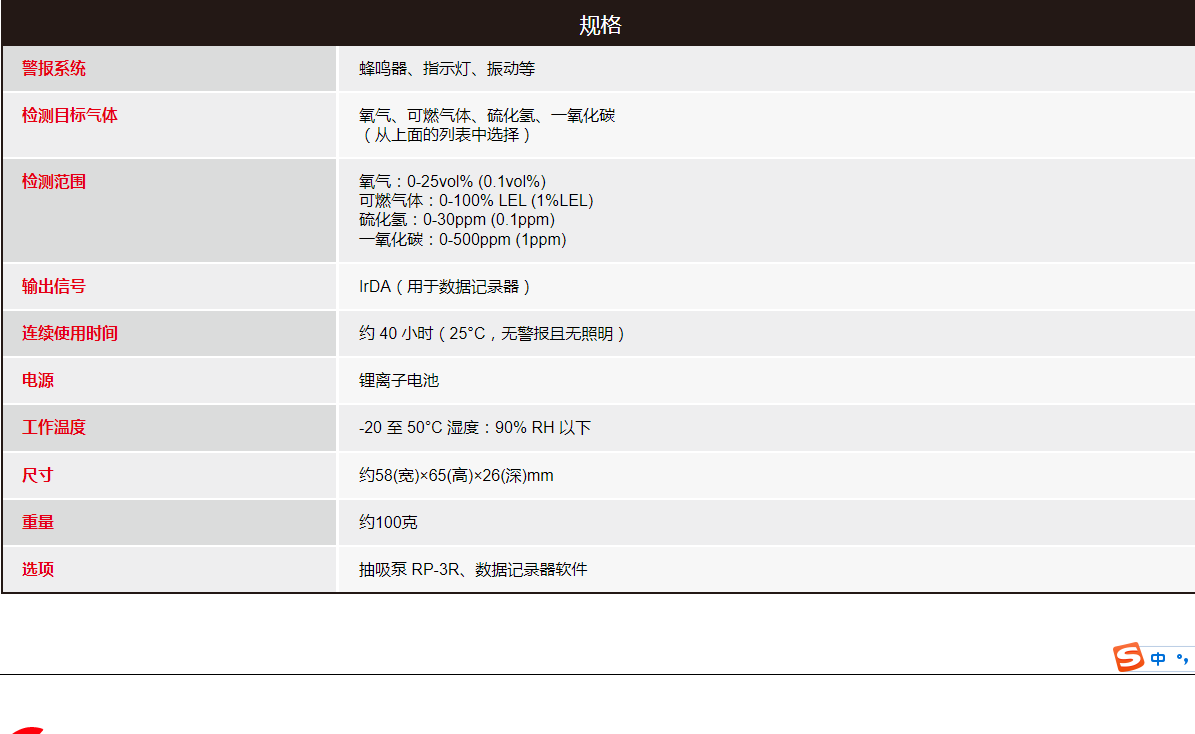 本質(zhì)安全防爆結(jié)構(gòu)。防護(hù)等級(jí)相當(dāng)于IP67。蜂鳴器、閃爍燈、振動(dòng)報(bào)警。各組分氣體濃度同時(shí)顯示在大液晶屏上。