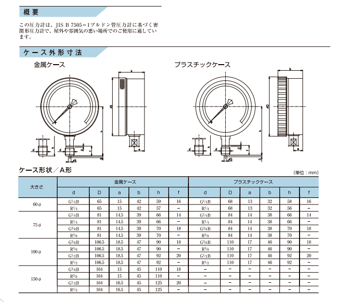 產(chǎn)品簡介: 該壓力表是基于JIS B 7505-1波登管壓力表的封閉式壓力表,適合在戶外或氣氛較差的地方使用。